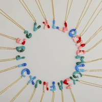 Collier d'été fait à la main en émail doré avec pendentifs de lettres de l'alphabet Collier à breloques coloré en or avec initiales A-Z