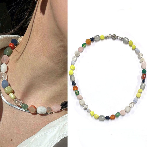 Mode collier de perles bijoux titane acier pierre naturelle boucle magnétique à la main collier de perles pour les femmes