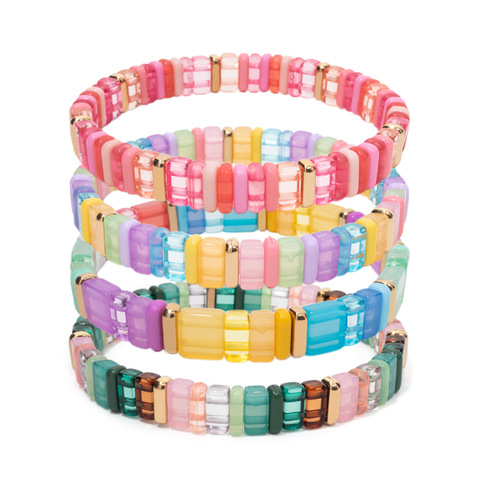 Thời Trang Đầy Màu Sắc Tươi Sáng Acrylic Đính Cườm Vòng Đeo Tay Cầu Vồng Kẹo Gạch Nhựa Rõ Ràng Hạt Kết Hợp Vòng Đeo Tay Cho Phụ Nữ Đồ Trang Sức