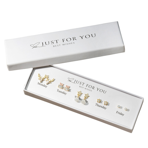 Vendita calda di più pezzi carino gattino cuore pesca 5 paia di orecchini settimanali Set per regalo da donna