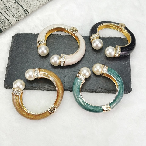 בציר נשים תכשיטי אמיתי רטרו אמא פרל זירקון שמנמן הוואי זהב קאף אמייל צמידי צמידי מתכת פליז Opp תיק Slim