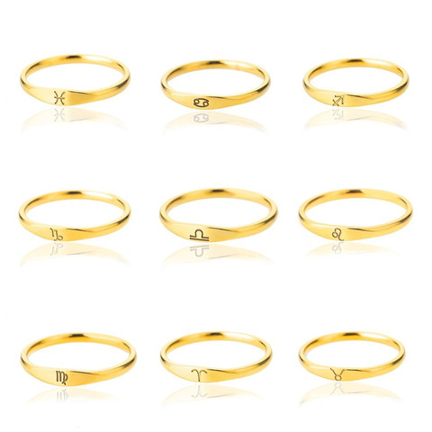 ファッションミニマリストステンレス鋼ジオメトリ12ゾディアックシンボルリング18K金メッキ女性ジュエリー