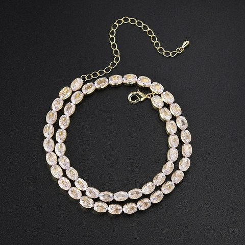 ヒップホップジルコンネックレス3*5MM 4*6MM卵形フルダイヤモンドテニス33CMローズゴールド真鍮ネックレスジュエリー