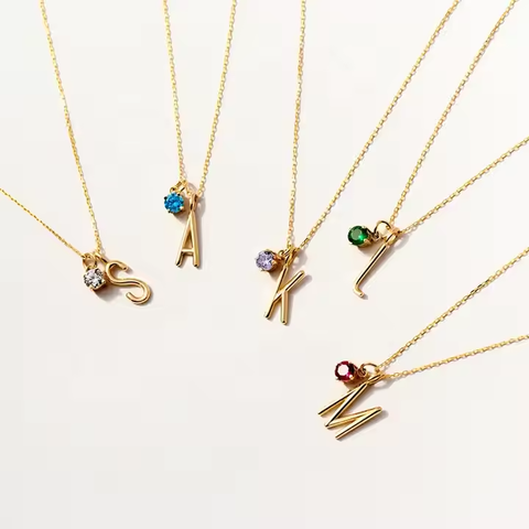 カスタム18Kゴールドデインティ初期誕生石ネックレスパーソナライズ文字ネックレス誕生日ギフト女性