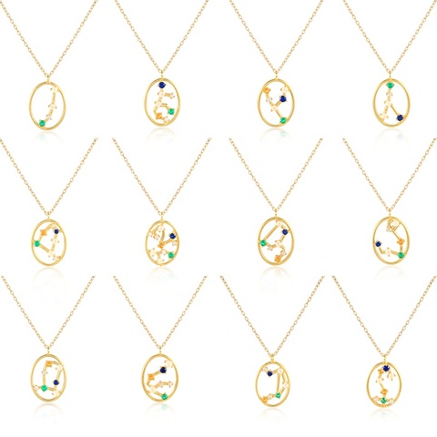 女性のための12の中国の干支ペンダントネックレス925スターリングシルバーゴールドオーバルペンダントネックレス女性ロングチェーンチョーカージュエリー