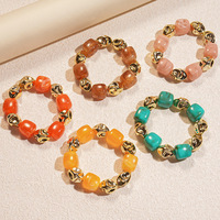 分厚いアクリルビーズ不規則な円形レトロ民族手作り弾性ビーズブレスレットバングルパーソナリティファッション女性ジュエリー
